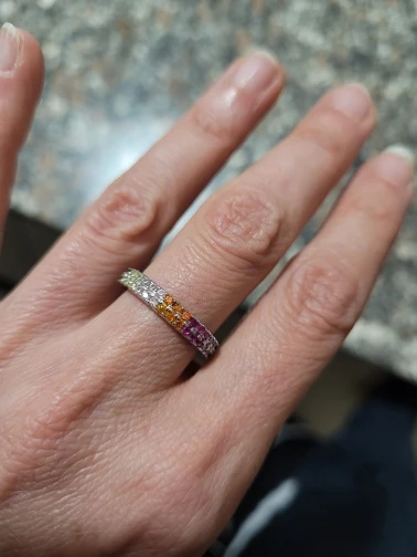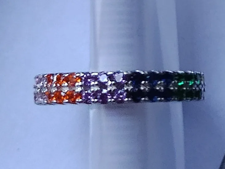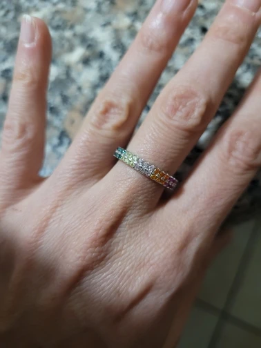 This Sterling Silver Rainbow Ring is the perfect way to brighten up your collection! Beautiful sterling silver and rainbow-colored cubic zirconia crystals combined for a mesmerizing effect. Add a little light to your style!